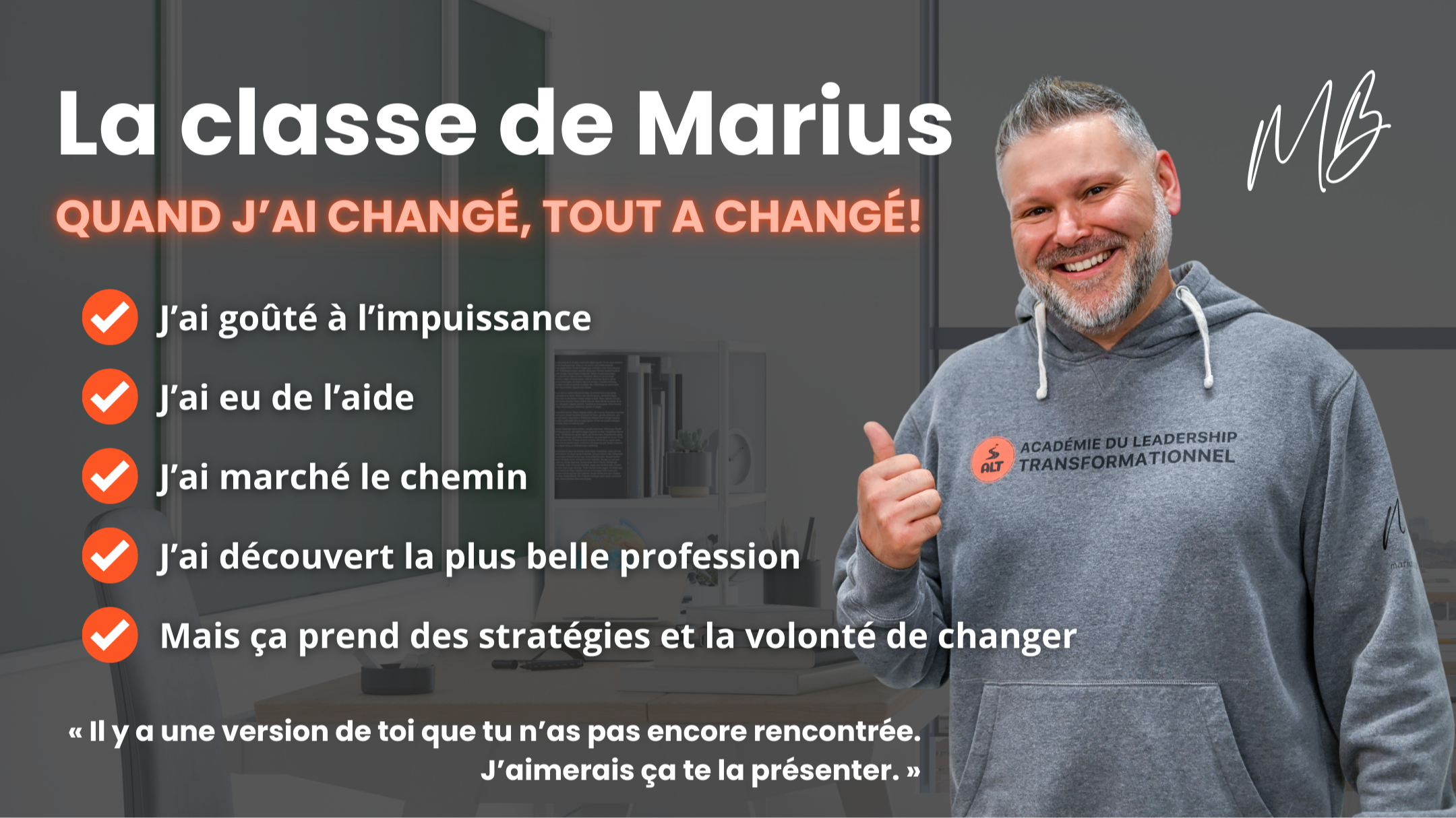 Tout ce qui est requis pour crĂ©er la classe de tes rĂȘves est dĂ©jĂ en toi. Ton super-pouvoir, c'est qui tu es. Avec La classe de Marius, tu vas maximiser ton pouvoir d'action et devenir un.e prof. d'influence.